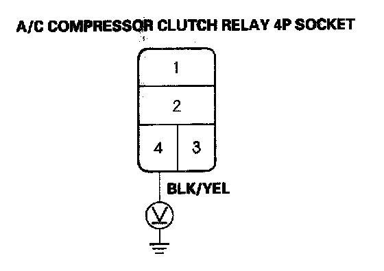 4. Measure the voltage between the No. 1 terminal of the A/C compressor clutch relay 4P socket and body ground.