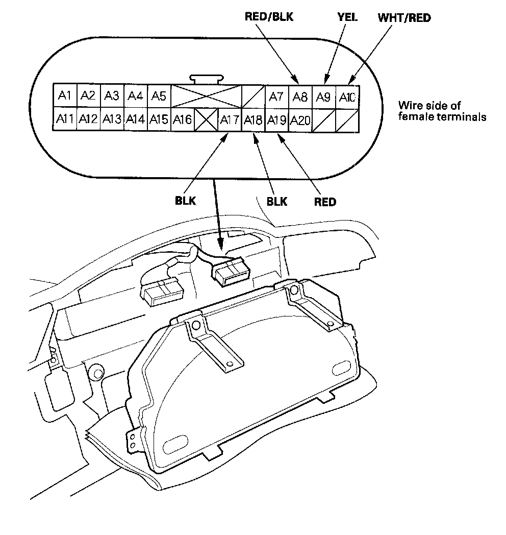 2. Inspect the gauge assembly connector A (22P) terminals to be sure they are all making good contact.