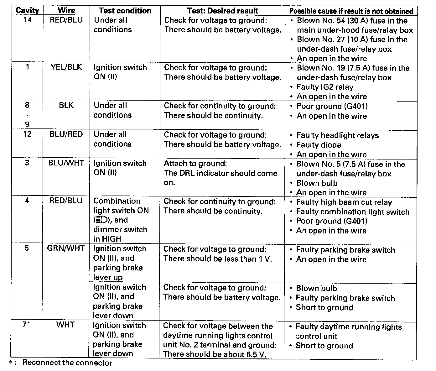Daytime Running Lights Subcontrol Unit Input TestUSA ('06-07 models)