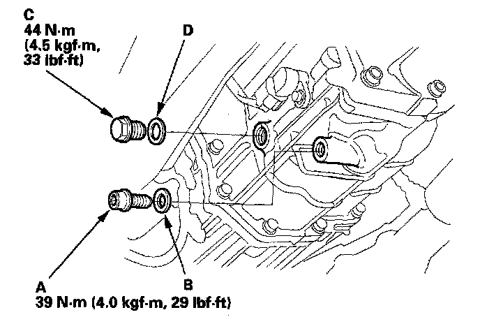 5. Install the oil filler plug (C) with anew washer (D).