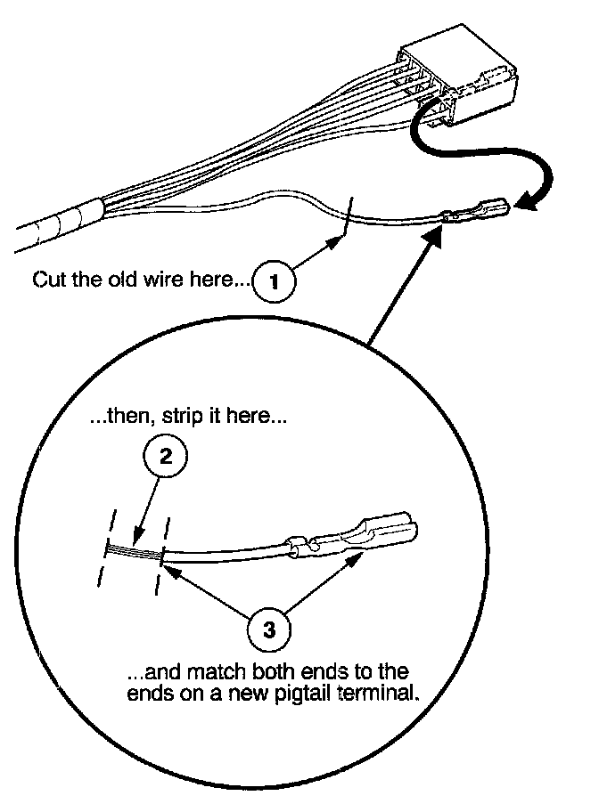 3. Select a pigtail terminal that matches the original wire at both ends (same kind of terminal and same diameter bare wire).