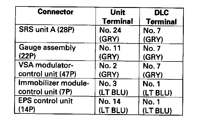 NO - Repair short in the wire between the DLC (DIAG-H) and the EPS control unit or the immobilizer control unit-receiver or the DLC (K-line) and the gauge assembly, the SRS unit, and the VSA modulator-control unit.