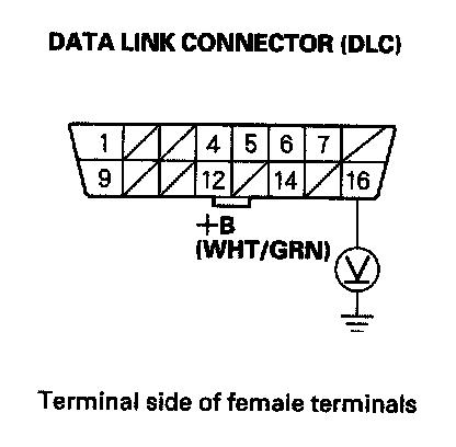 21. Measure voltage between DLC terminal No. 16 and body ground.
