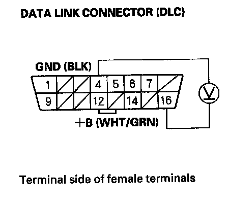 22. Measure voltage between DLC terminals No. 4 and No. 16.