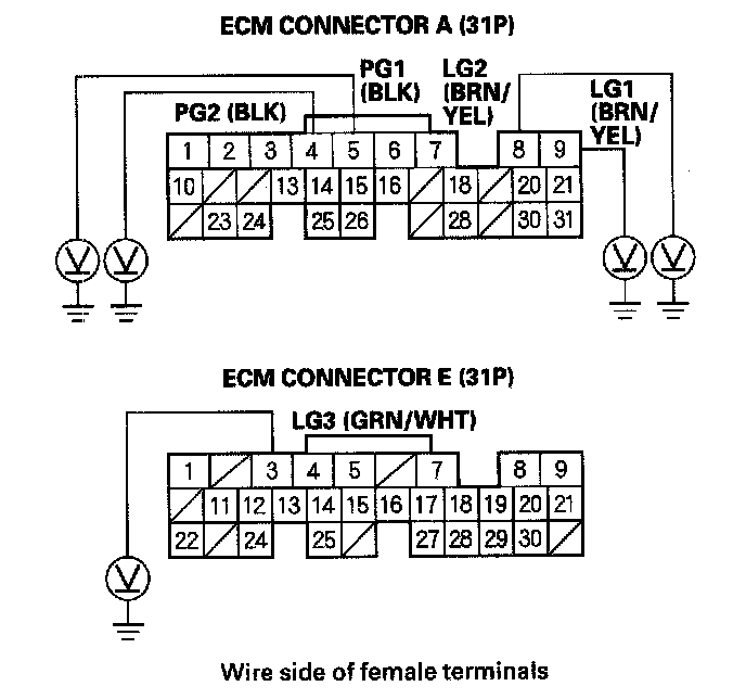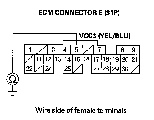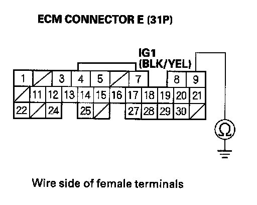 31. Check for continuity between ECM connector terminal E24 and body ground.