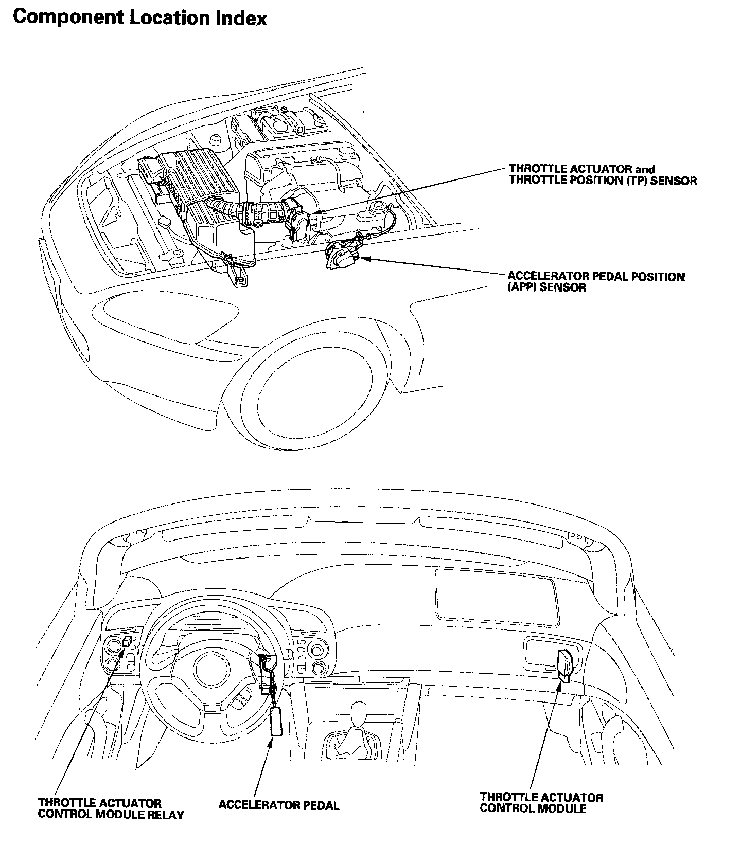 Electronic Throttle Control System Component Location Index: