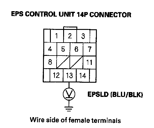 11. Check for continuity between EPS control unit 14P connector terminal No. 13 and body ground.