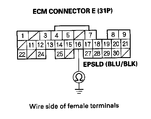 19. Check for continuity between ECM connector terminal E16 and body ground.