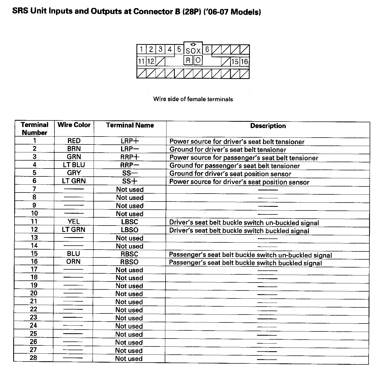 SRS Unit Inputs And Outputs At Connector B (28P)