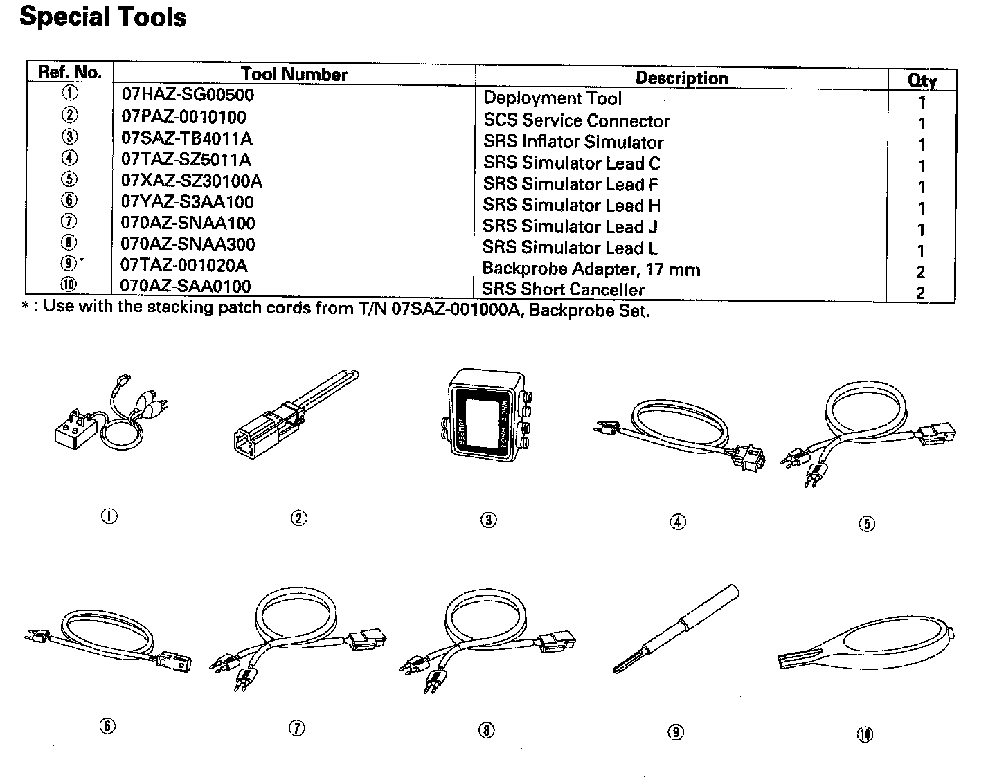 Restraints Special Tools: