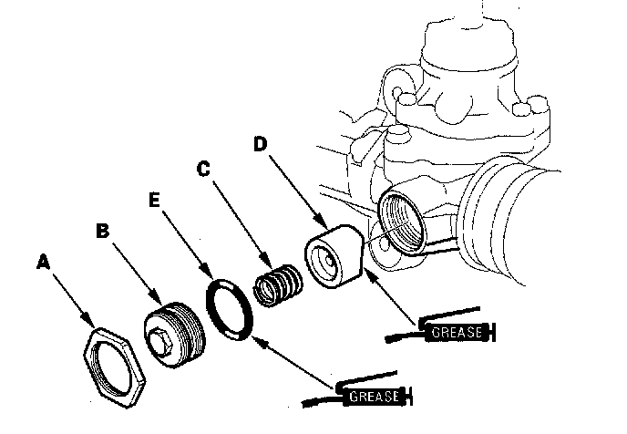 3. Coat the new O-ring (E) with multipurpose grease, and carefully fit it on the rack guide screw groove.