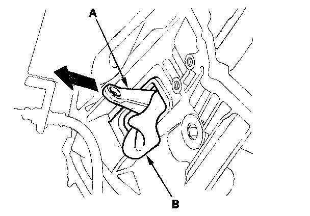 4. Pull the release fork (A) out until it stops, then wedge a shop towel (B) between the release fork and clutch housing to hold the release fork in place.