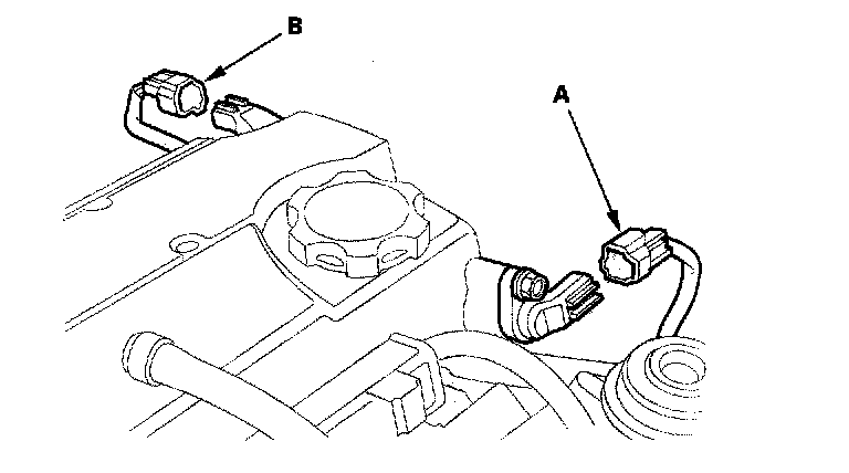 25. 2000-2005 models: Connect the camshaft position (CMP) sensor A (top dead center (TDC) sensor 1) and CMP sensor B (TDC sensor 2) connectors.