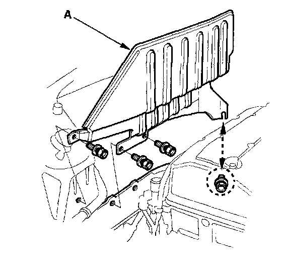16. Remove the heat shield (A), then remove the exhaust manifold cover.