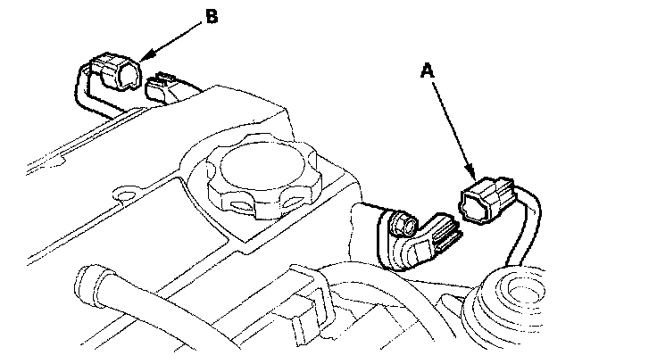19. 2000-2005 models: Disconnect the camshaft position (CMP) sensor A (top dead center (TDC) sensor 1) and CMP sensor B (TDC sensor 2) connectors.