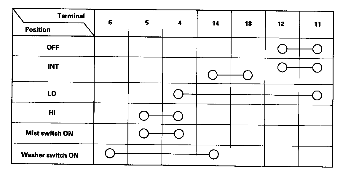 4. Check for continuity between the terminals in each switch position according to the table. If the continuity is not as specified, replace the switch.