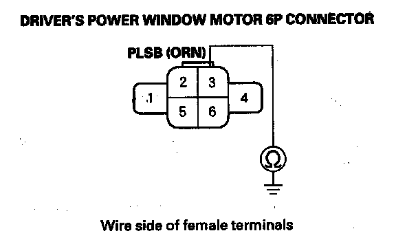 14. Check for continuity between the driver's power window motor 6P connector No. 2 terminal and body ground.