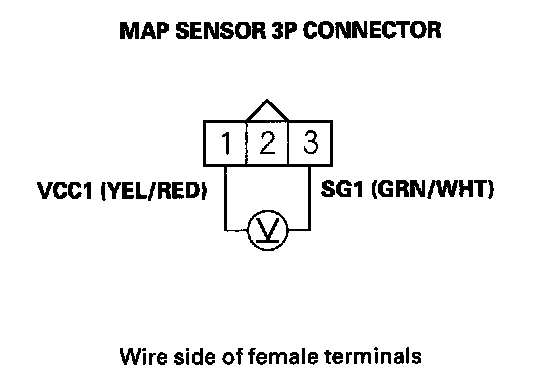 7. Measure voltage between MAP sensor 3P connector terminals No. 1 and No. 3.