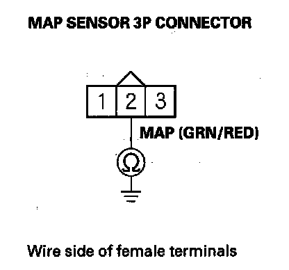 15. Check for continuity between MAP sensor 3P connector terminal No. 2 and body ground.