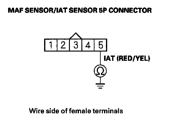 10. Check for continuity between MAF sensor/IAT sensor 5P connector terminal No. 5 and body ground.
