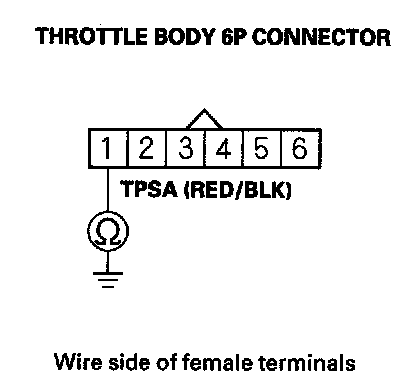 9. Check for continuity between throttle body 6P connector terminal No. 1 and body ground.