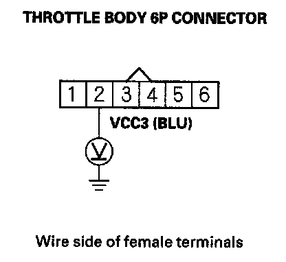 10. Measure voltage between throttle body 6P connector terminal No. 2 and body ground.