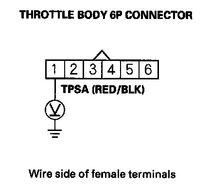 8. Measure voltage between throttle body 6P connector terminal No. 1 and body ground.