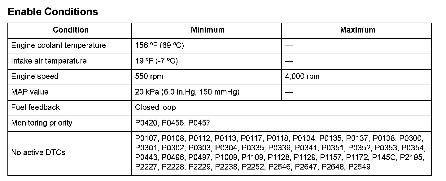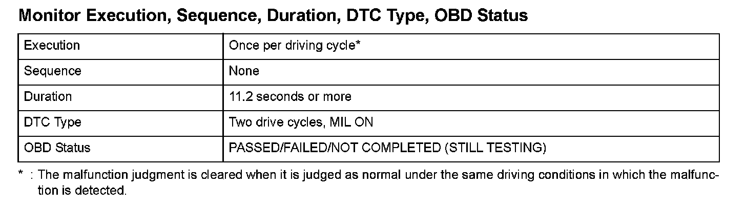 Monitor Execution, Sequence, Duration, DTC Type, OBD Status
