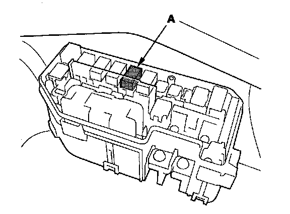 12. Remove the ignition coil relay (A) from the under-hood fuse/relay box.