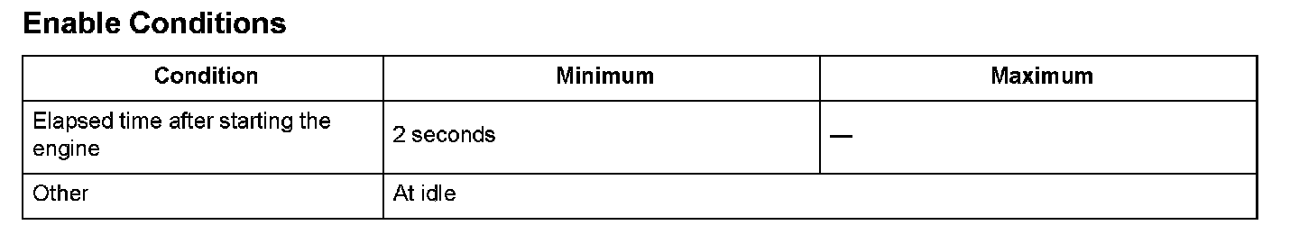 The fuel tank pressure (FTP) sensor is installed on the evaporative emission (EVAP) canister and detects the fuel tank pressure. The FTP sensor is used to detect leaks in the EVAP system. The engine control module (ECM)/powertrain control module (PCM) monitors the FTP sensor output voltage. The FTP sensor output voltage rises as the fuel tank pressure increases. Conversely, the FTP sensor output voltage drops as the fuel tank pressure decreases. If the FTP sensor output voltage is higher than a target value for a set time after starting the engine in a cold condition, the ECM/PCM detects a malfunction and stores a DTC.