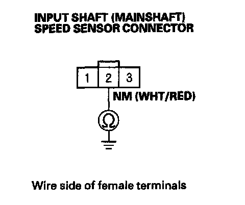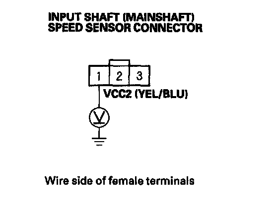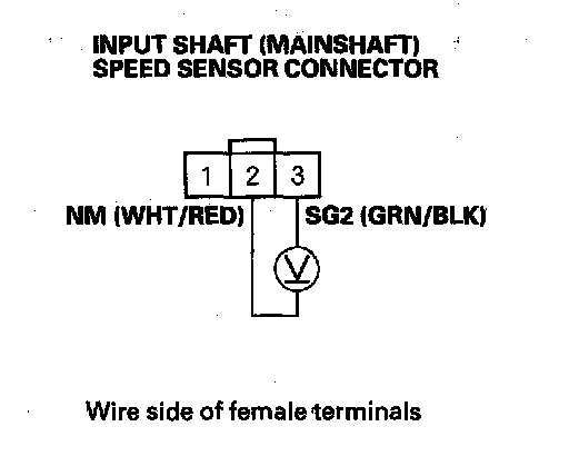 14. Measure the voltage between input shaft (mainshaft) speed sensor connector terminal No. 1 and body ground.