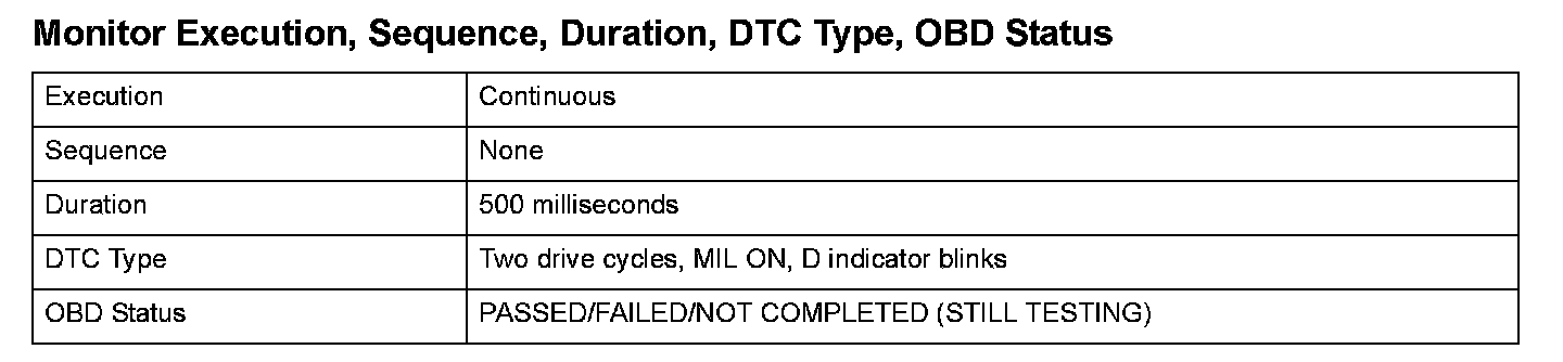Monitor Execution, Sequence, Duration, DTC Type, OBD Status