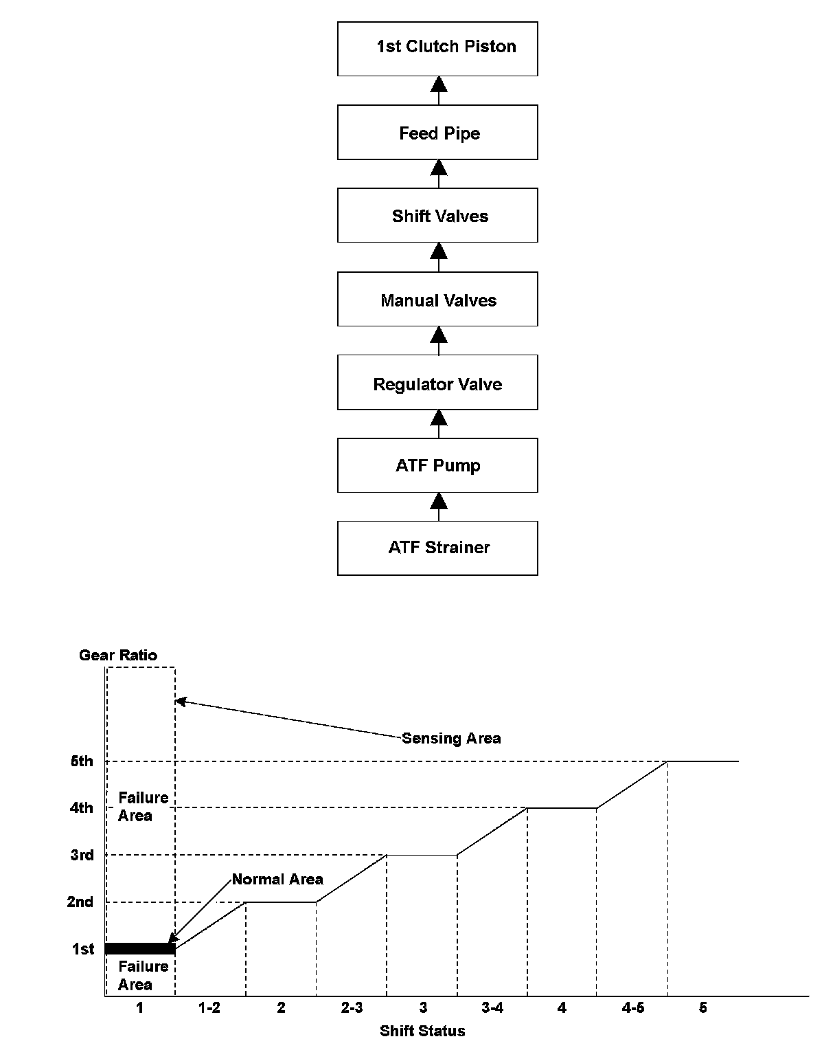 DTC P0731: Problem in 1st Clutch and 1st Clutch Hydraulic Circuit (1st Gear Incorrect Ratio)General Description
