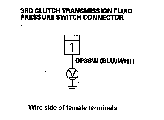 11. Measure the voltage between the 3rd clutch transmission fluid pressure switch connector terminal and body ground.