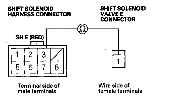 YES - Check for poor connections or loose terminals between shift solenoid valve E and the PCM, then go to step 1.
