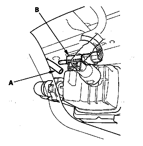 18. Disconnect the air tube (A) from the FTP sensor (B).
