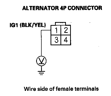 12. Measure voltage between alternator 4P connector terminal No. 1 and body ground.