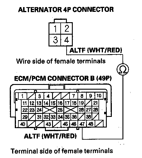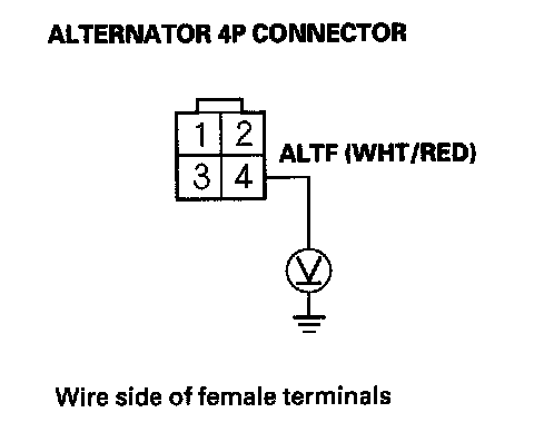 1. Check for poor connections or loose terminals at the alternator 4P connector.