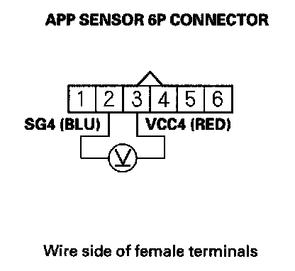 6. Measure voltage between APP sensor 6P connector terminals No. 2 and No. 3.