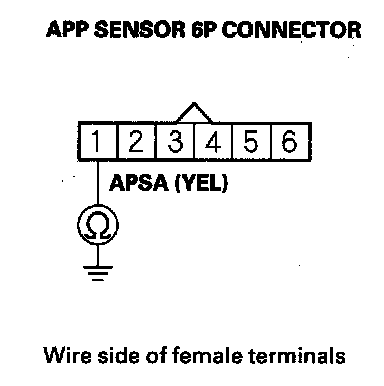 10. Check for continuity between APP sensor 6P connector terminal No. 1 and body ground.