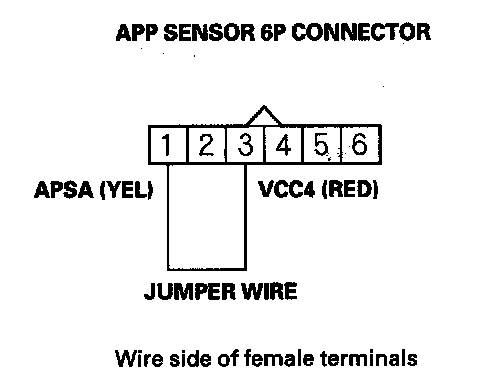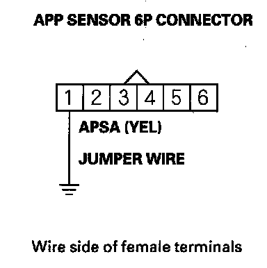 11. Connect APP sensor 6P connector terminal No. 1 to body ground with a jumper wire.