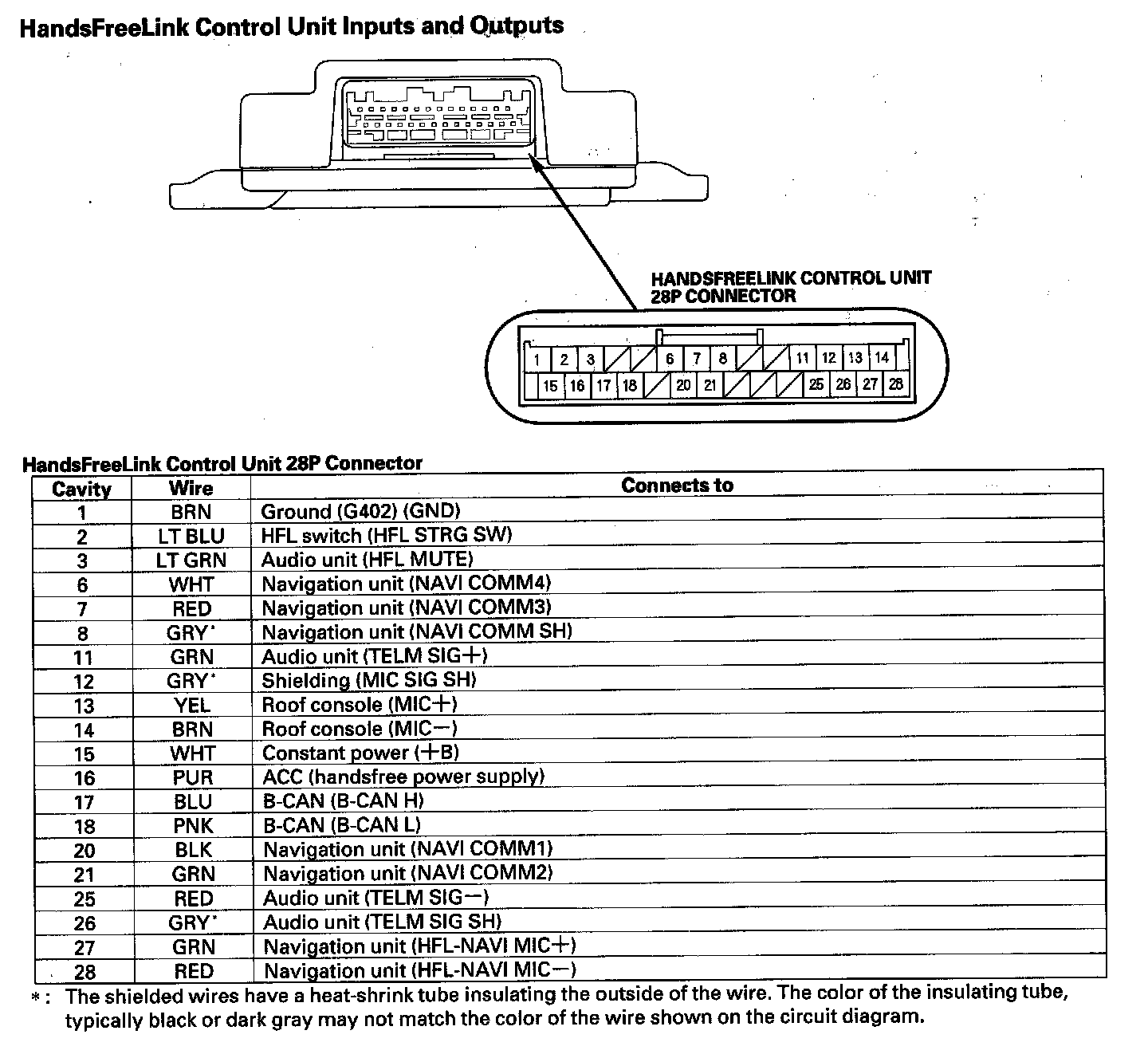 HandsFreeLink Control Unit Inputs And Outputs: