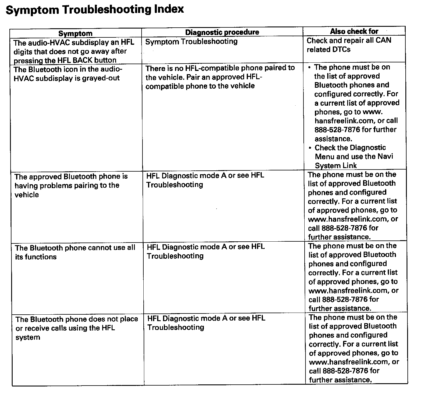 Symptom Troubleshooting Index