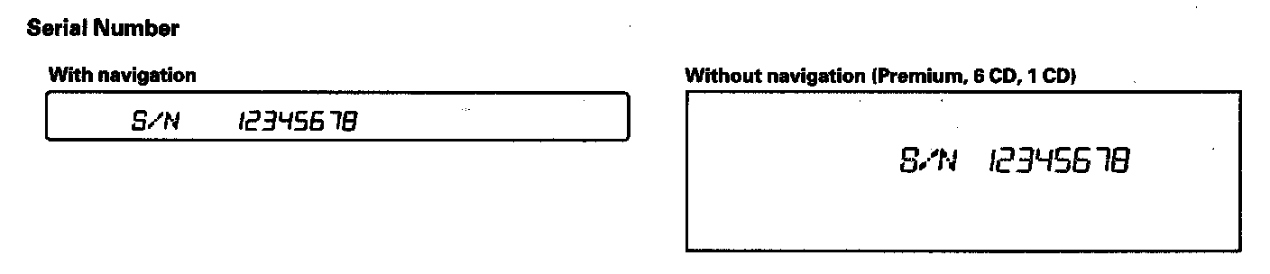 NOTE: This procedure can only be done when the power has been disconnected from the audio unit, displays CODE. With the audio unit switched off, push and hold the preset button No. 1, No. 6 and the VOL PUSH PWR knob, then release. The audio unit displays the eight digit serial number (example 12345678). Use the eight digit serial number when using the interactive network (iN) to get the 5 digit anti-theft codes.