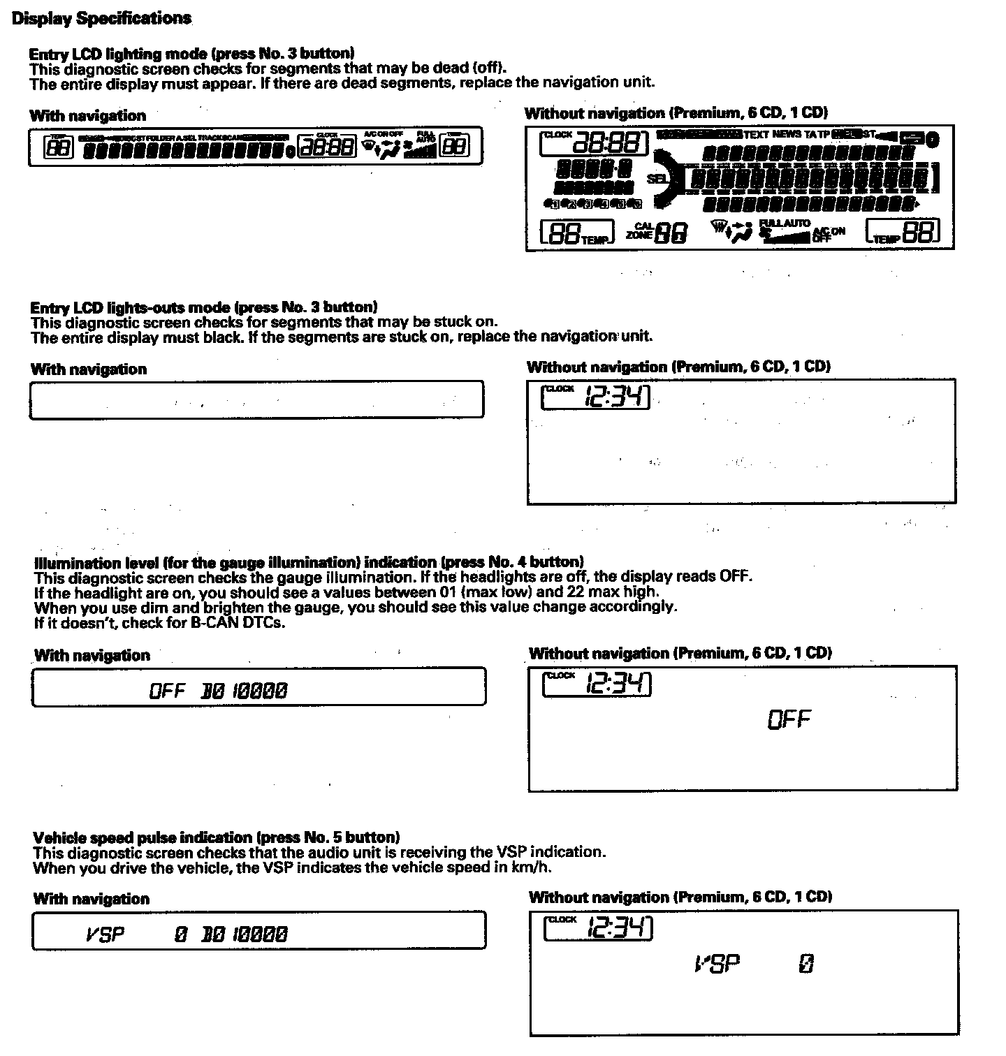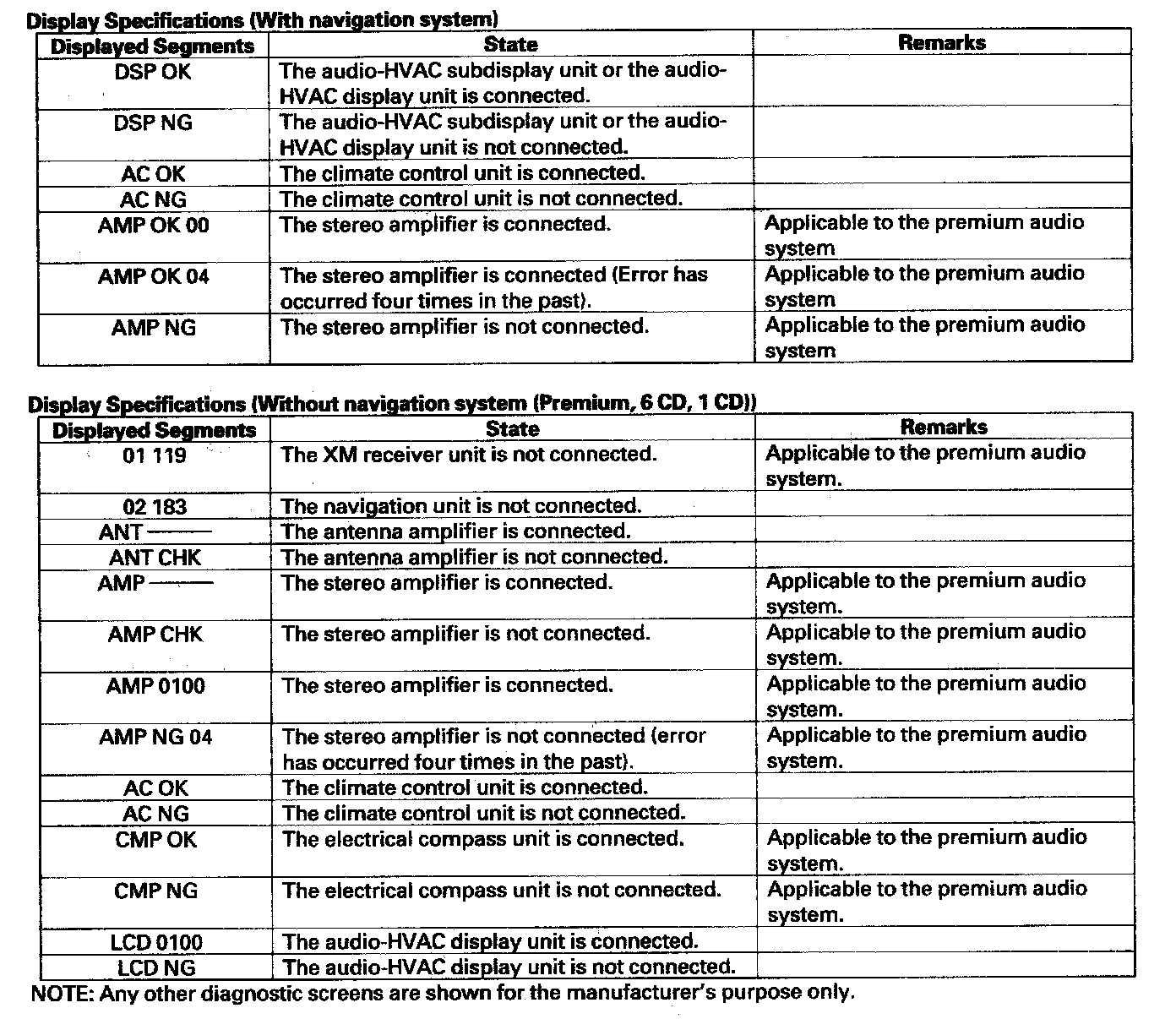 4. The self-diagnostic function ends when you turn the audio unit off or turn the ignition switch to LOCK (0).