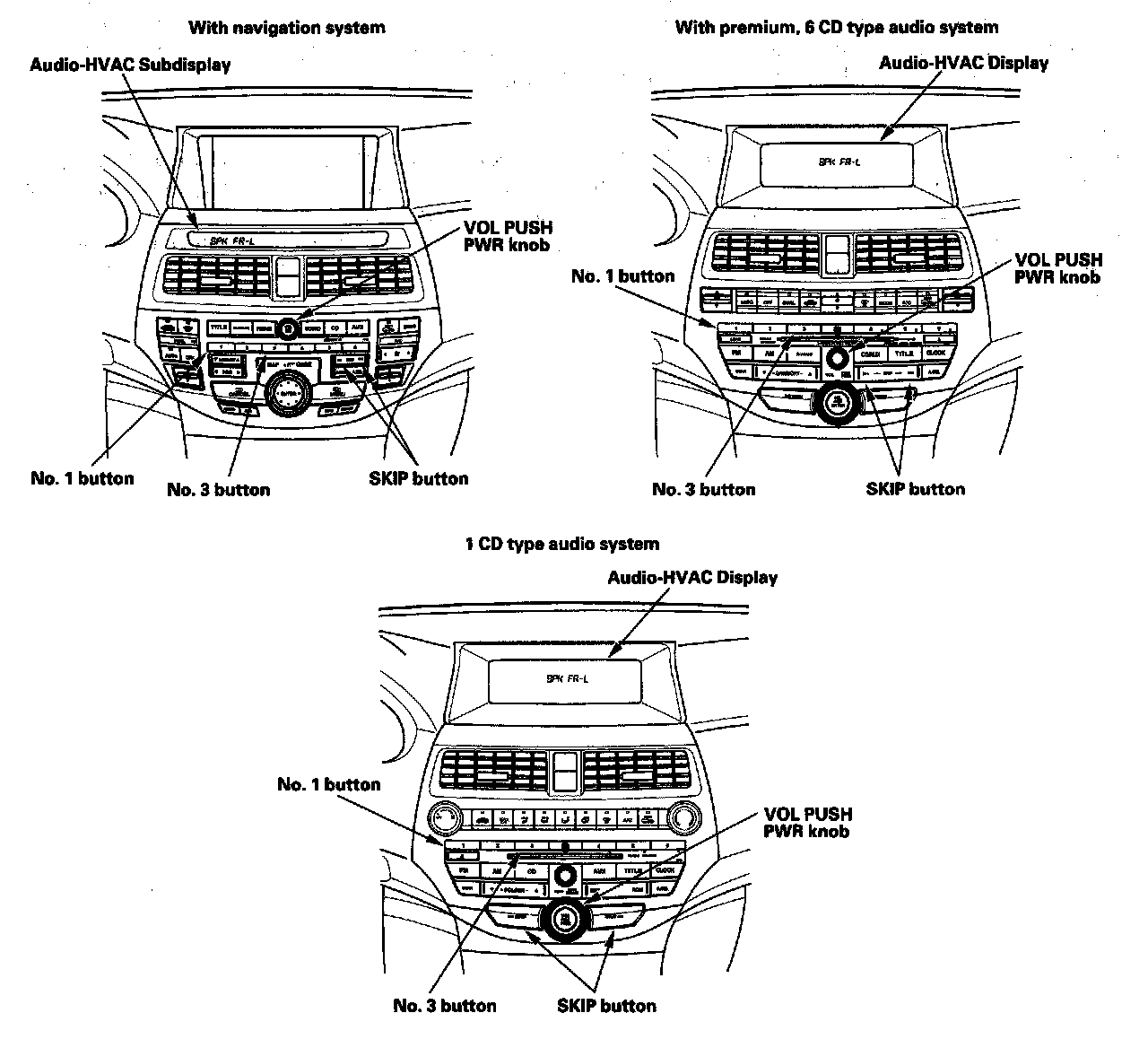 1. Turn the ignition switch to ON (II). Turn the audio unit off.