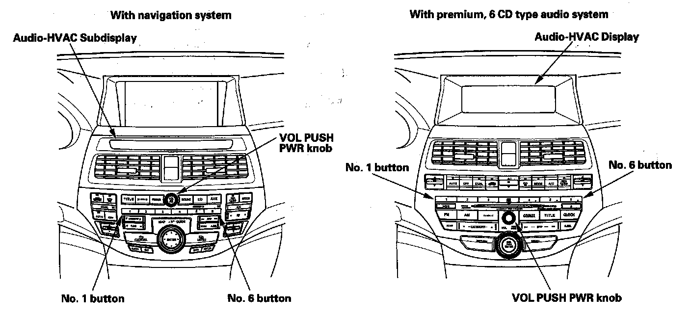 2. Push and hold the No. 1 and No. 6 buttons. While holding the buttons, push the VOL PUSH PWR knob to on. Release the buttons.