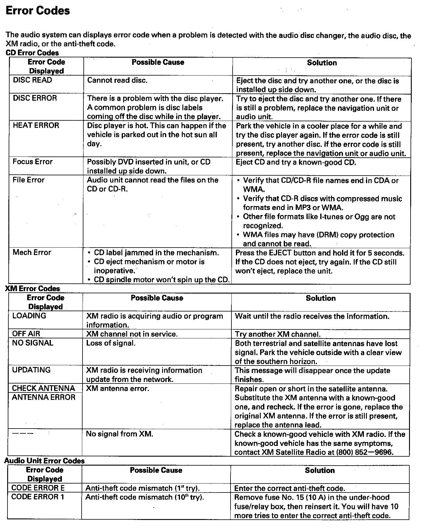 Error Codes