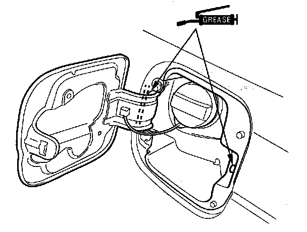 Fuel Fill Door Adjustment1. Slightly loosen the hinge mounting bolts (A).