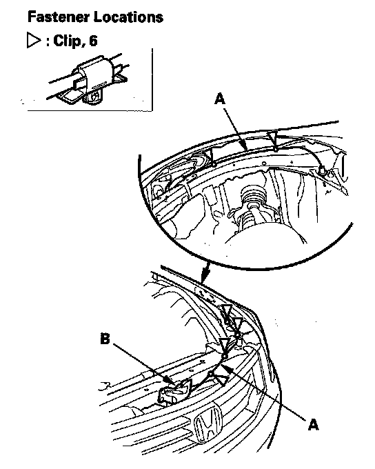 4. Disconnect the hood opener cable (A) from the hood release handle (B). Take care not to kink the cable.